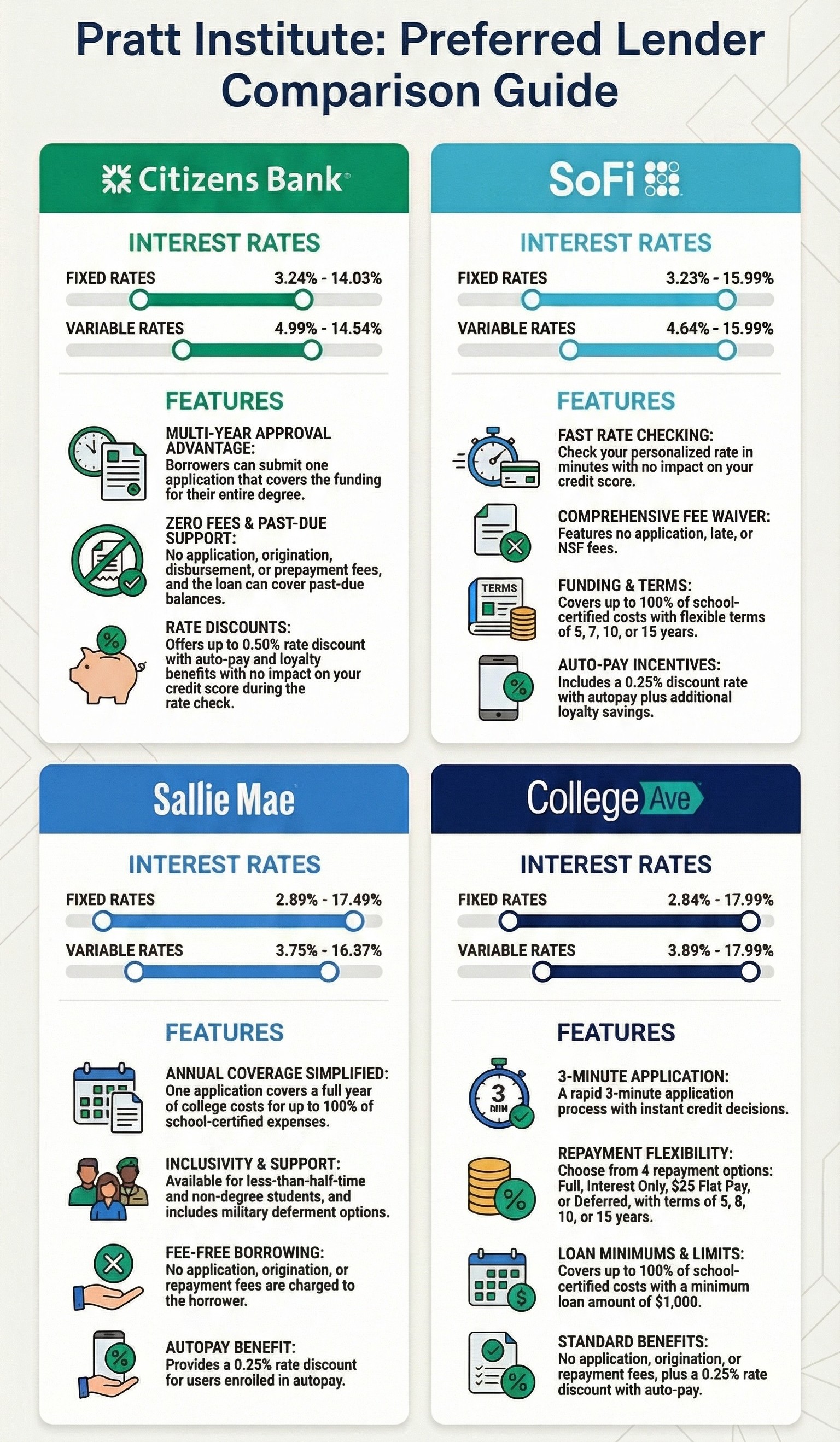 Based on this comprehensive review, Pratt Institute selected the following four lenders for our preferred lender list: