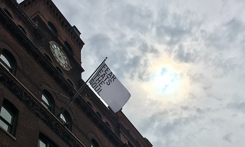 A flag designed by artist Rirkrit Tiravanija was raised on the Main Building flagpole on Pratt’s Brooklyn Campus on April 4 as part of Pledges of Allegiance, a public art project organized by…