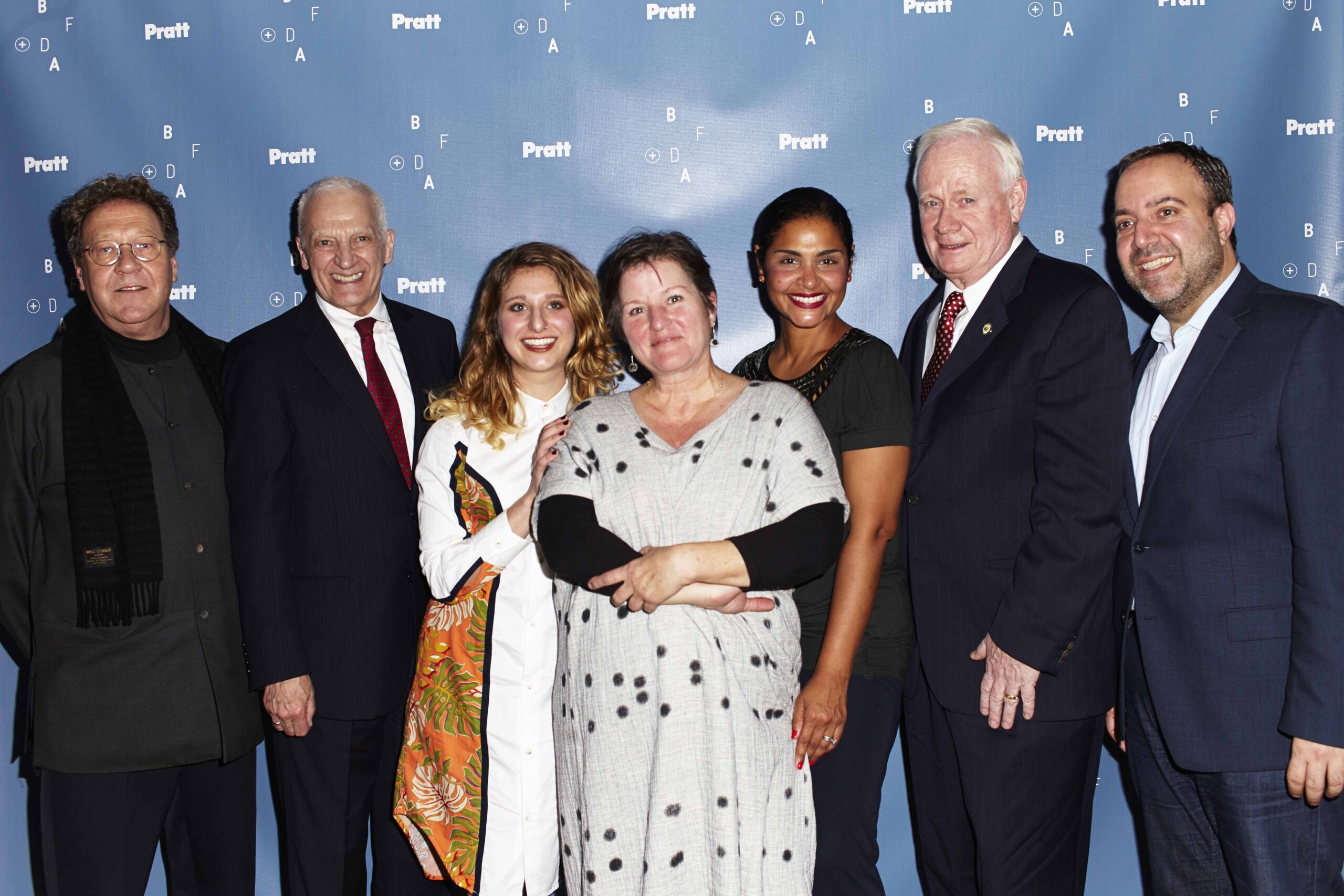 Image (L-R): Pratt Institute Provost Peter Barna; Pratt Institute President Thomas F. Schutte; BF+DA Venture Fellow and entrepreneur Nina Zilka who is co-founder of Alder New York; BF+DA Executive Director Debera Johnson; Brooklyn Deputy Borough President Diana Reyna; New York State Senator Martin J. Golden; Brooklyn Chamber of Commerce President and CEO Carlo A. Scissura (photo: Barbara Anastacio for Pratt Institute)