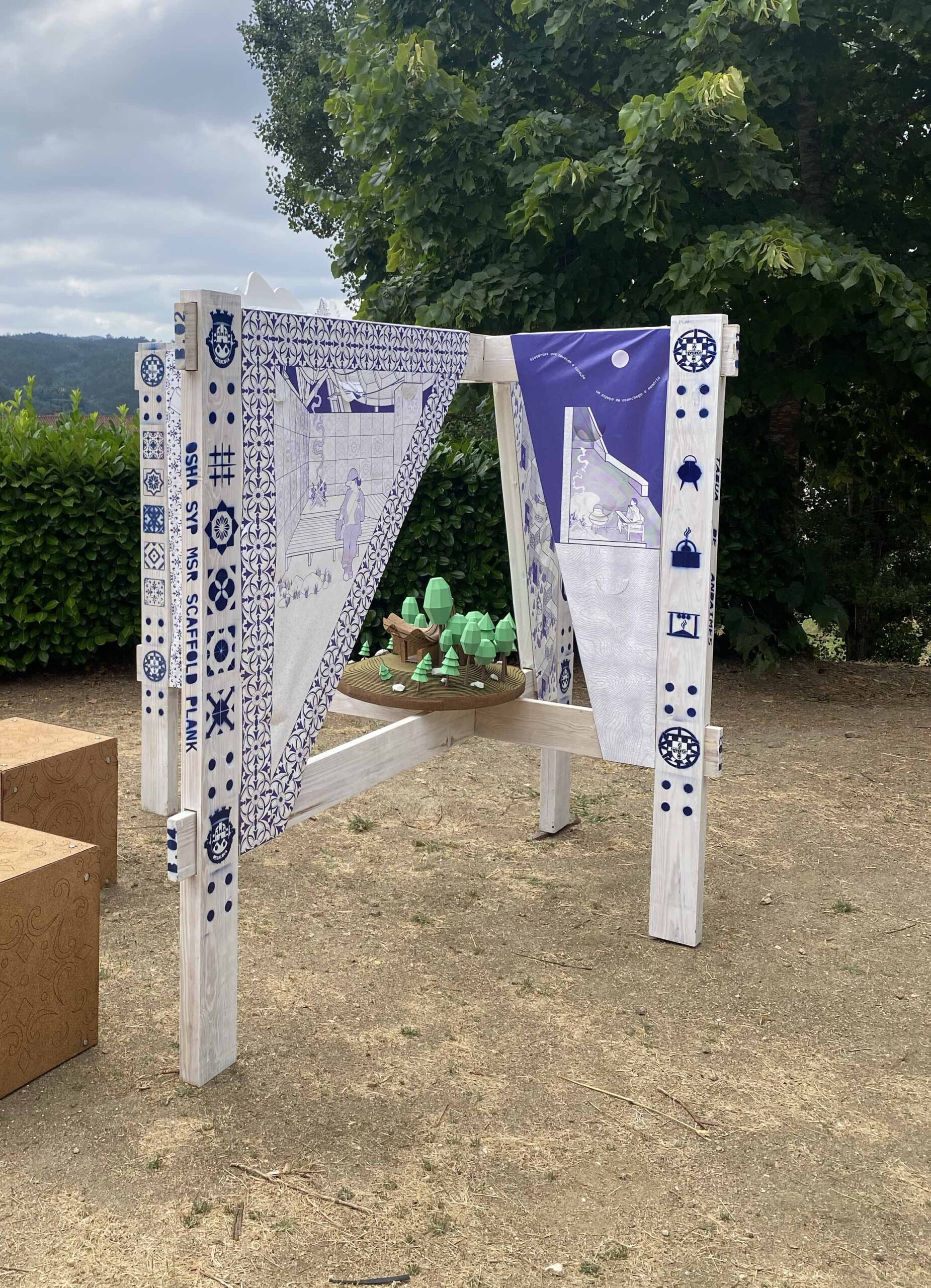 These works are the culmination of a yearlong collaboration between students and faculty from Pratt Institute and the University of Coimbra and will remain in Penacova for the public to explore through September as part of the inaugural À Deriva Architecture, Design, and Arts Festival. Inspired by conversations with local community members about their way of life, cultural symbols, and hopes for the future, the projects ask passersby to consider the region’s cultural history and think about ways to bolster community and reimagine public spaces.