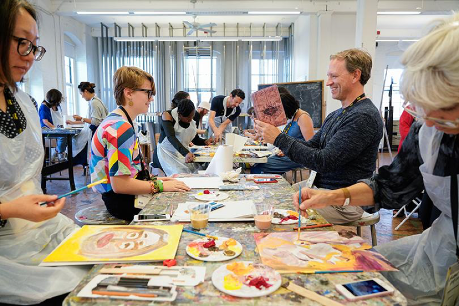 Among the day’s highlights were a fine art portraiture painting class and career and professional development workshops. Alumni had the opportunity to share their stories and memories at a video documentation booth. In addition, alumni toured Pratt’s on-campus galleries, which featured exhibitions from across the Institute.