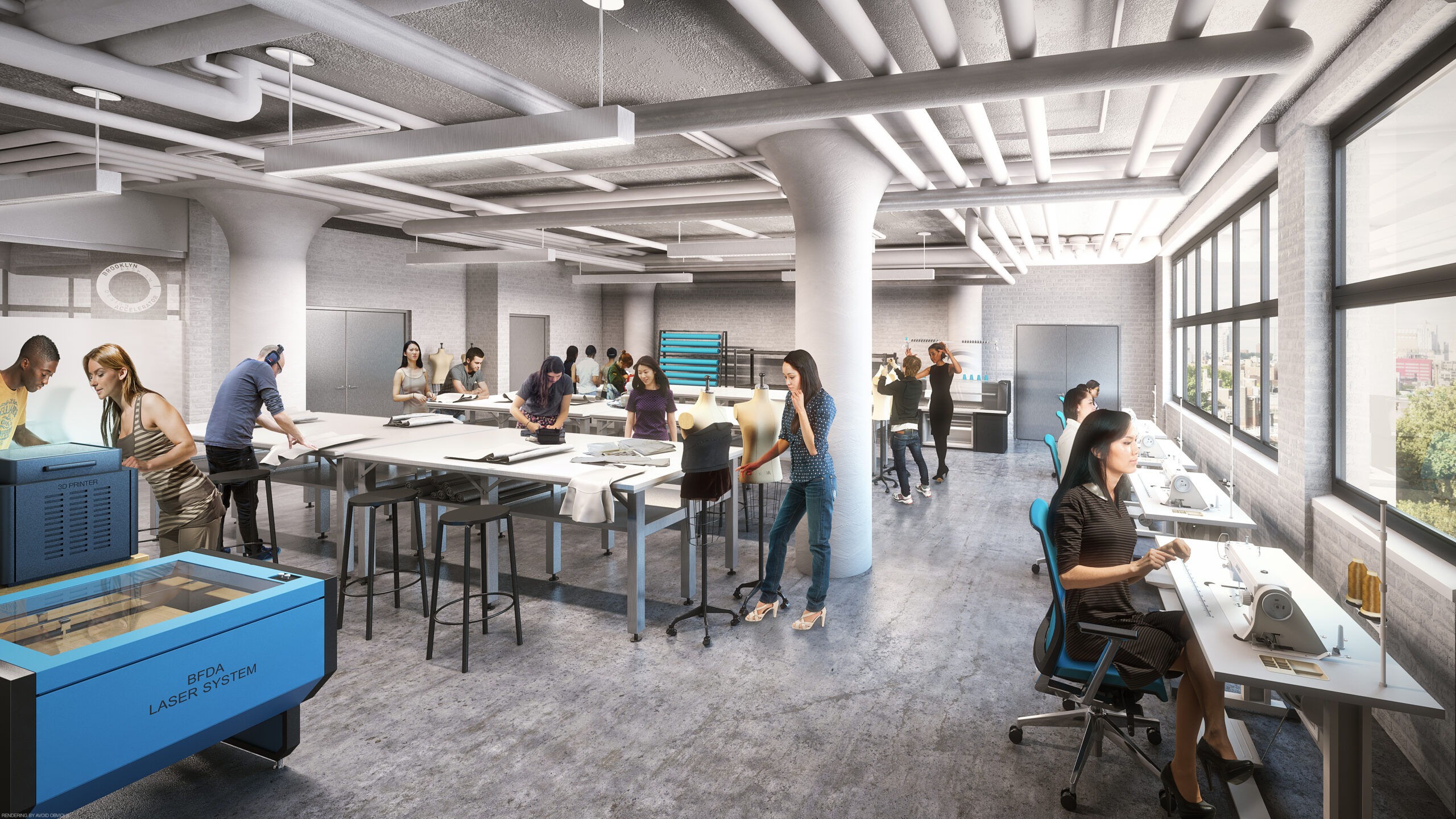 With funding from the State of New York, the Borough of Brooklyn, and the Institute, the Accelerator occupies a 15,000-square-foot unit in the former Pfizer building in South Williamsburg. It will provide studio space and production capability for 30 design-oriented candidates who are integrating environmental and social responsibility practices into their bottom line. The Accelerator will undergo renovations before tenants move in.