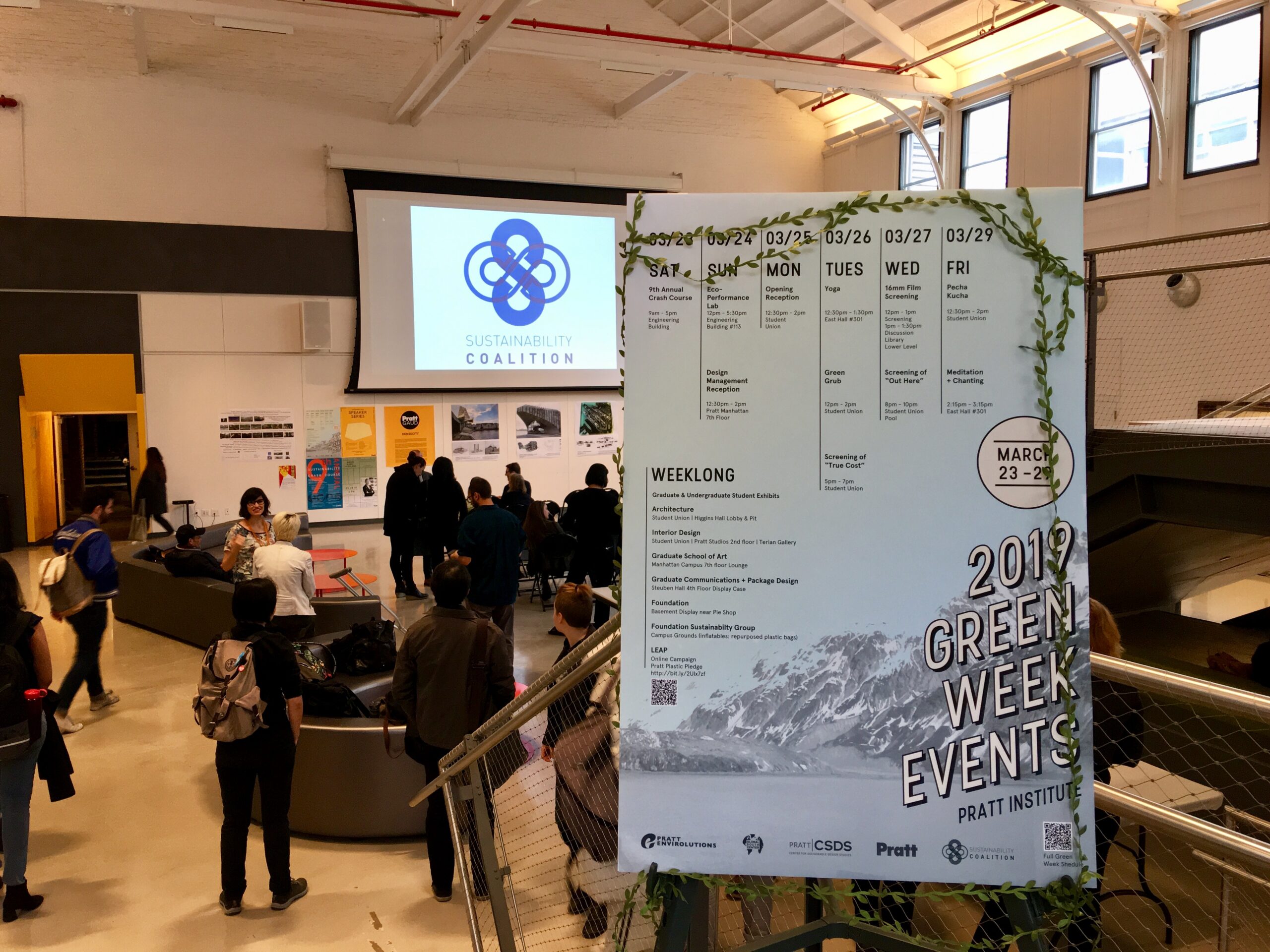 Sustainable design and environmentally-conscious work are happening year-round at Pratt Institute, and the 14th annual Green Week was an opportunity to showcase that leadership on both the Brooklyn and Manhattan campuses. Organized by the Sustainability Coalition with the Center for Sustainable Design Strategies (CSDS), it involved Pratt students, faculty, and staff from across disciplines in programs on climate change and sustainability, and offered ways to participate in local conservation efforts.