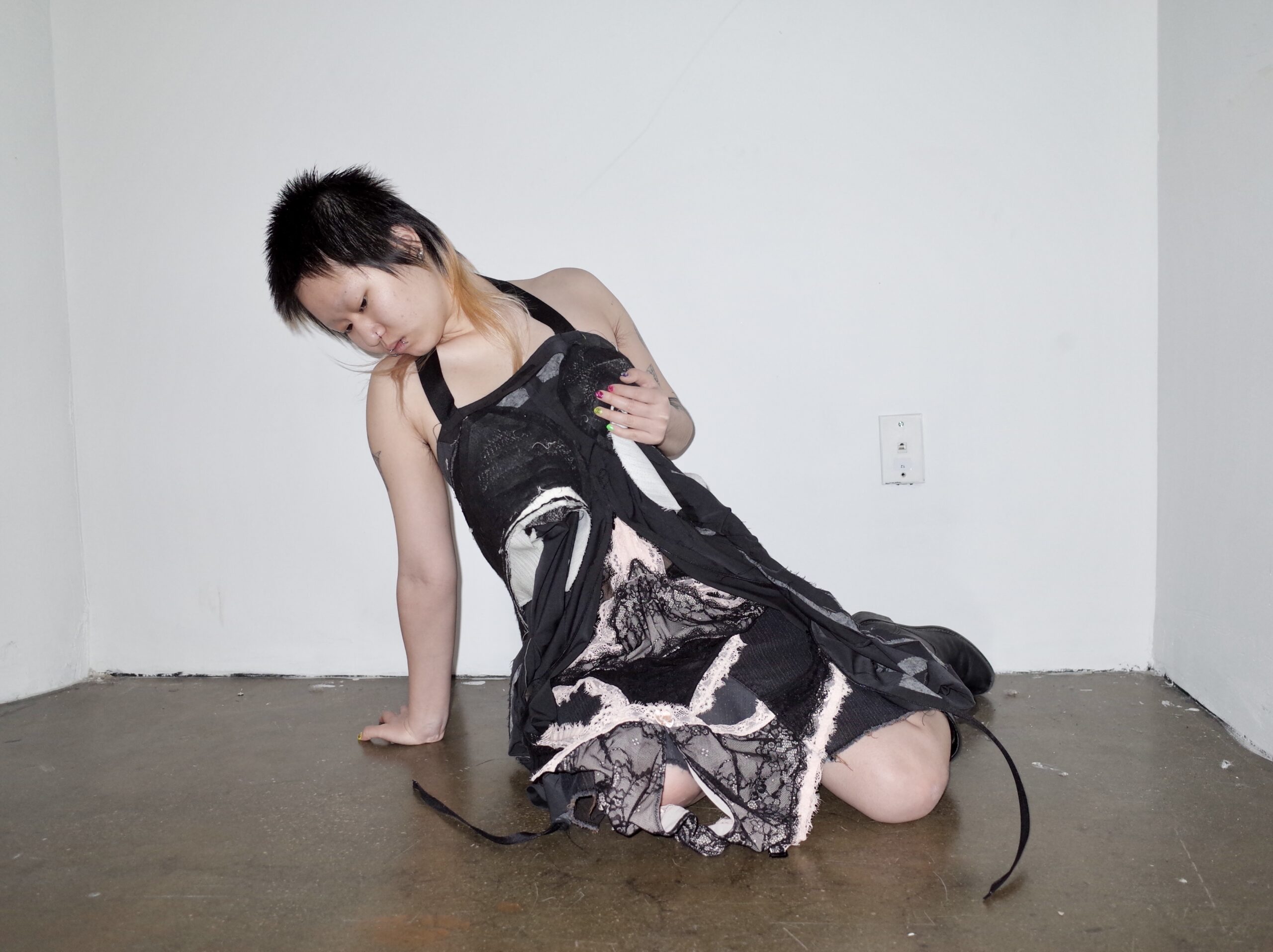 A model wears fashion designed by Peilin Chen, MFA Fashion Collection + Communication ’26 (image courtesy of Peilin Chen) -