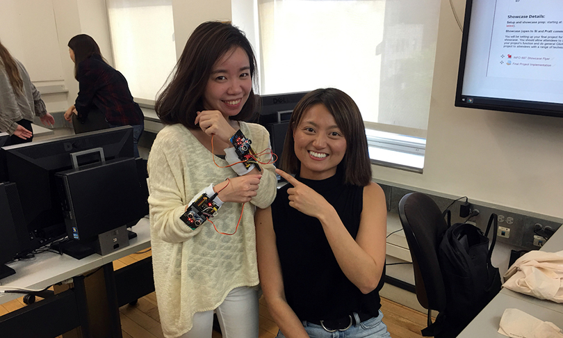 These final projects were presented at the 2019 Pratt InfoShow. Many of the materials used by the students are low-cost; Nullman and Kostova employed garbage bins and oil diffusers for their LED light beacons, Deocariza worked with sensors from an open-source hardware manufacturer aimed at hobbyists. The technology they demonstrated can be employed in countless ways in information settings, whether in automating reference statistics, making digital signage, or reimagining the user experience, yet these skills are rarely taught in information science. Maceli stated that they hope to offer the class regularly in the School of Information and collaborate with the Math and Science department and IT on future related courses. Because physical computing involves affordable technology that is so customizable in its applications, it opens the door to creative experimentation in these fields and expands access to information.