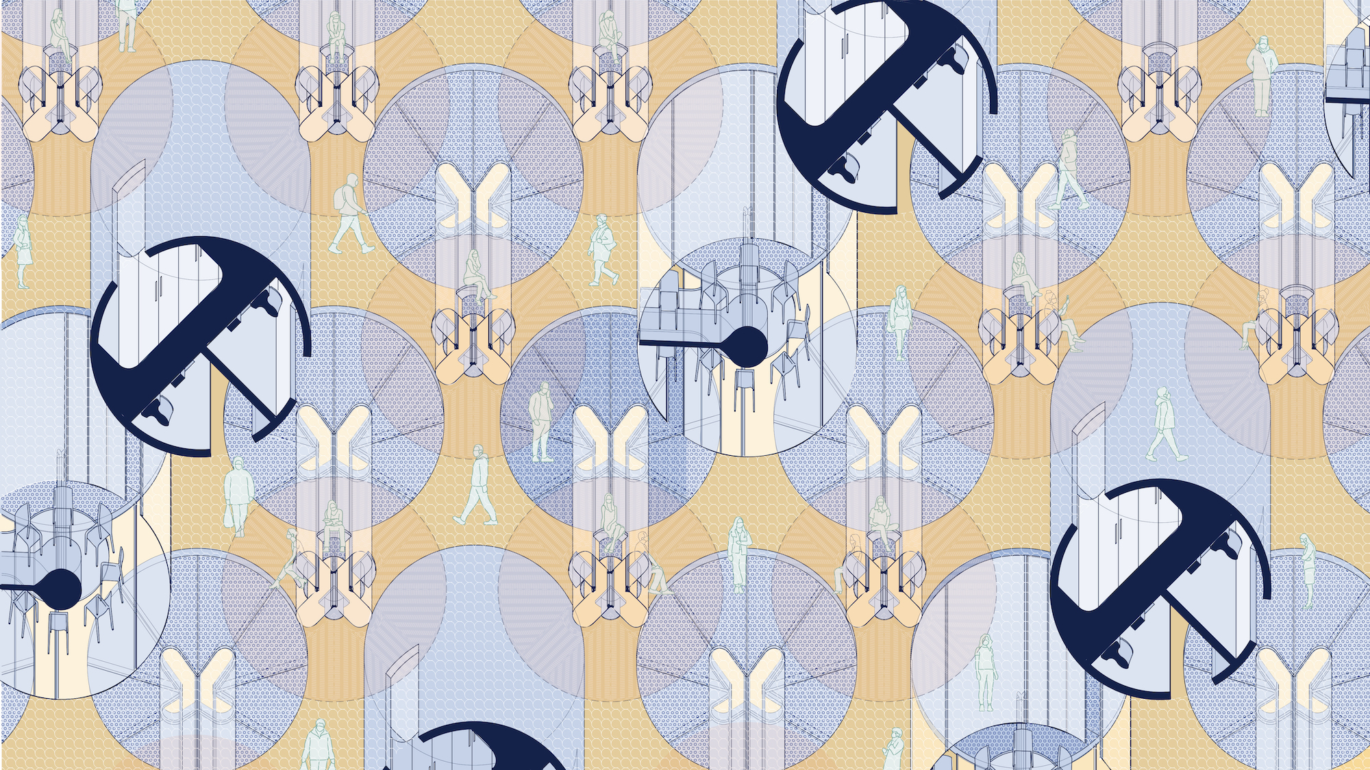 Crystal Griggs, BArch ’22, paid particular attention to two tangible signifiers of safety during the COVID-19 pandemic: physical barriers and ventilation. The result is a system of pods that, in their cocoon-like form, convey protection while also signaling visually that air is moving, through hooded vents in the facade and an exhaust passageway at the top.