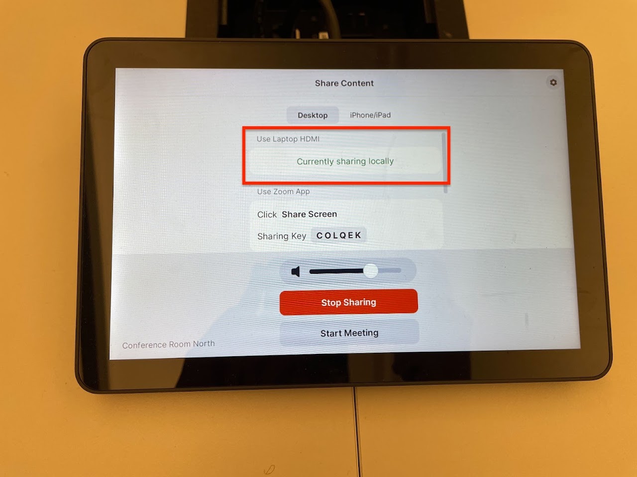 If you’re already connected via the HDMI cable, tap the Share icon on the touch panel to share your screen in Zoom. This is the easiest and most reliable way to share your screen.